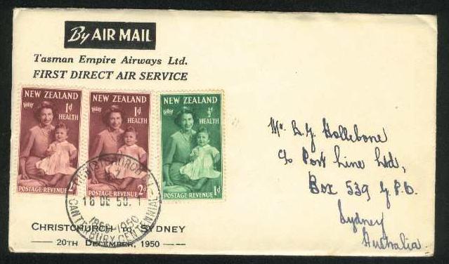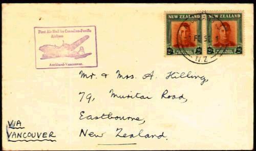 HOME > STAMP SITES > NEW ZEALAND INTERNATIONAL FLIGHT COVERS > AFTER 1940