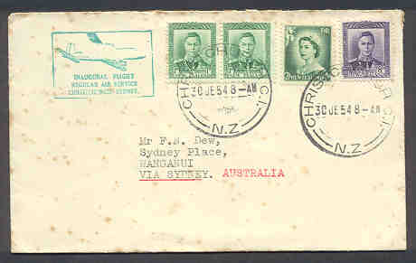 This service was by chartered Qantas DC4. Christchurch could not be serviced by flying boats and TEAL leased DC4's from Trans Australian Airways for the ongoing service.