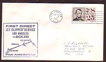 1965 Pan Am commences jet service LA to Auckland - November, B707 "Jet- Clipper". A name redolent of the 1930's. Pan Am replaced DC-7Cs with these, later B747s, an aircraft it pioneered. It lasted flying to Auckland until 1986, and finally collapsed in 1991 - a sad end to a once proud venture.