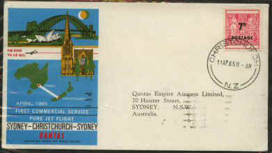 1965 Inaugural Qantas Jet Service - Sydney - Christchurch. April 10. Boeing 707, VH-EBL "City of Geelong"