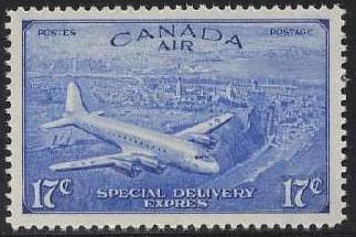 The Canadair IV was a DC4, license produced by Canadair with Merlin engines. Fittingly it has a Canadian stamp. The longer nacelles compared to a standard DC4 are apparent. It was also pressurised which added to its popularity.