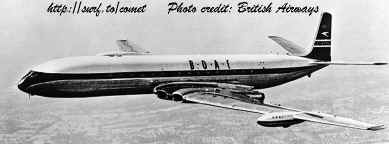 The Comet 4 was a late development of the earlier ill-fated models of the De Havilland Comet. This model first flew in 1958. BOAC, the predecessors of BA, were the major user of the type.