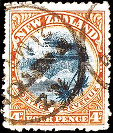 New Zealand What its like down under! Lake Taupo and Mt. Ruapehu from the 1900 issue of the first commemoratives. Not an easy invert to spot. Might be some more out there? This one was found in 1930, years after its issue and use. The 4d rate is more likely to have applied to postage of items to outside New Zealand. The Post Office buying back used stamps? That's what New Zealand Post did with this unique inverted centre 4d. More. 1998 centennial reissue of the set. |