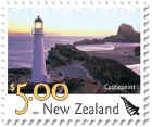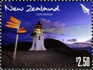 See more on these here. Universal Mail - an authorised mail operator in New Zealand - has produced lighthouse stamps. See Shades Stamp Shop for images. They have covered Cape Brett, Taiaroa Head (two variants), Cape Campbell and Cape Reinga lights. Here is one of them: New Zealand Post 2005, part of a commemorative series of stamps on stamps. iN