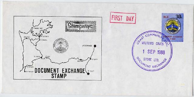 In 1988 a group of businesses around Otorohanga formed a document exchange and issued stamps. It was illegal and was subsequently closed down. It extended to the North Island west coast - hence the name and the symbol - which is not any particular lighthouse. FDC (thumbnail)