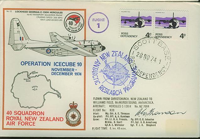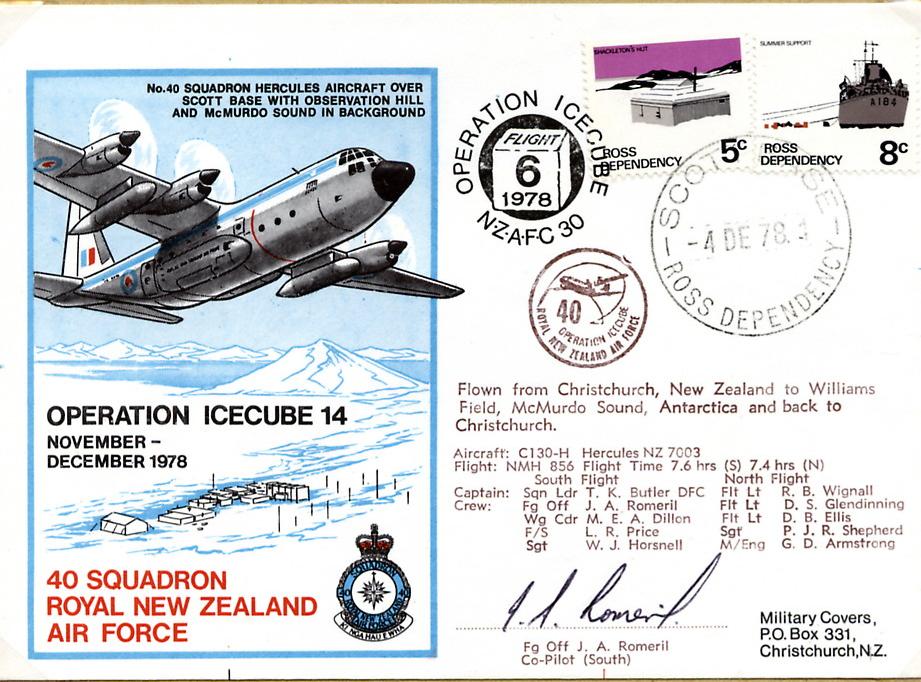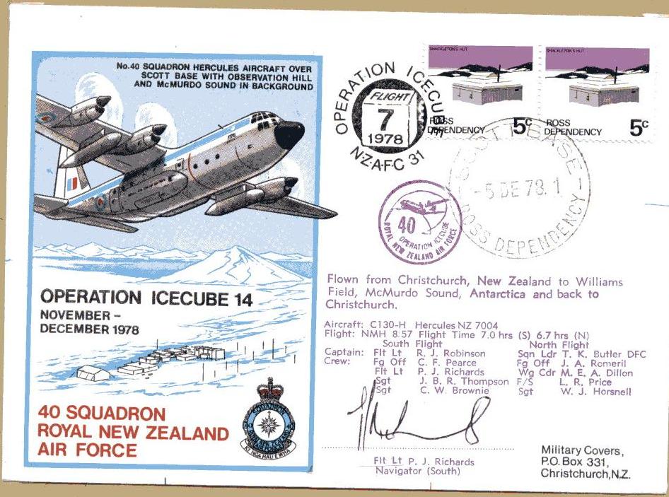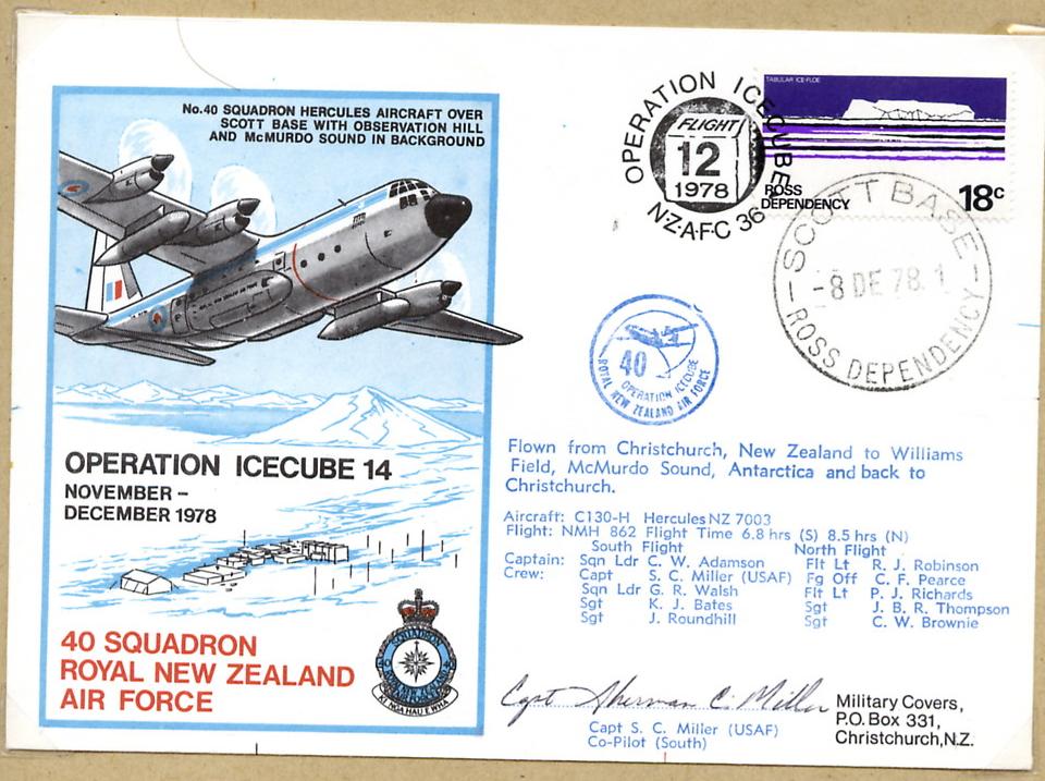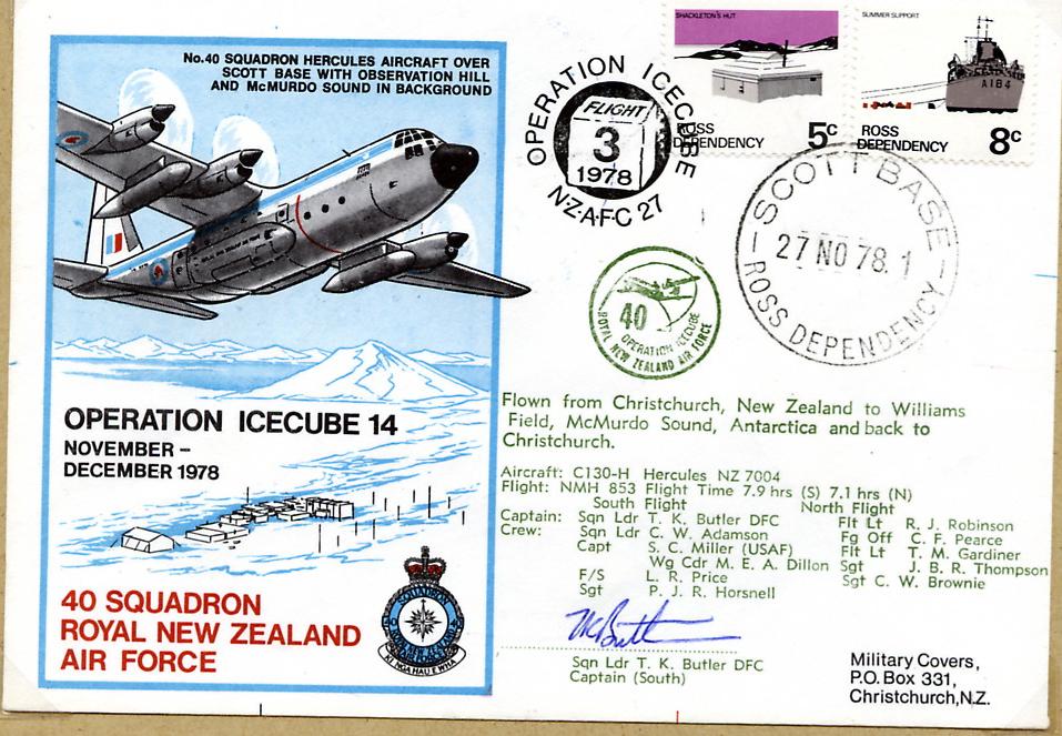 Ice cube was the name given to RNZAF supply flights. Covers were produced for many of them