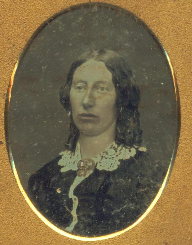 Not labeled but thought on family resemblance grounds to be Alice. Daggeurotype. See pair believed to be of Brother William.