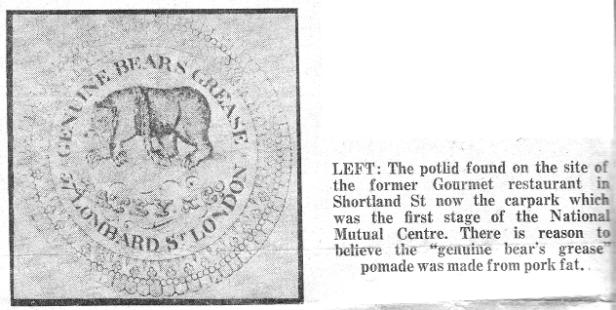 St development started, with the knocking down of the Gourmet restaurant[31] and neighbouring buildings for our parking building, a fine pot lid,