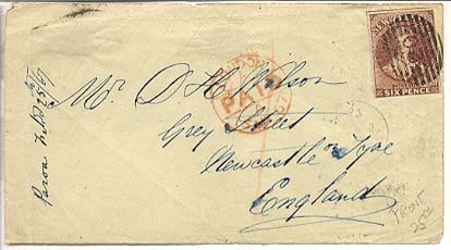 This may seem an odd thing. The rate was first gazetted in 1857. The route was overland across Suez (the canal opened later in 1869), Packet Boat to Marseilles and overland across France. This was faster than route completely by sea. See a typical cover of 1867, marked via Marseilles.
