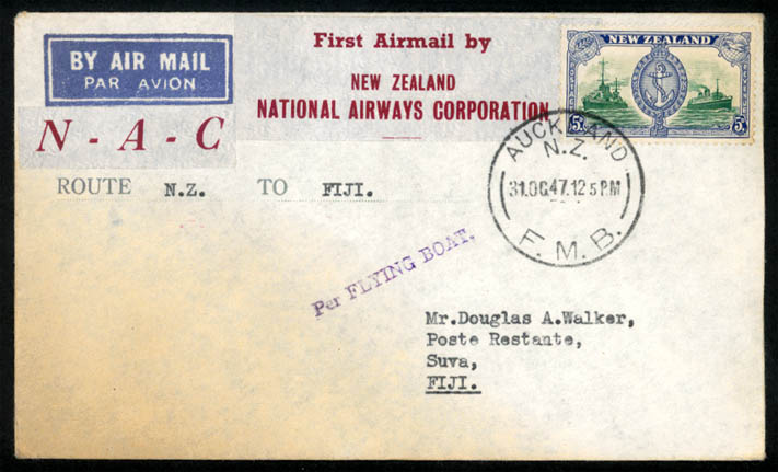 Auckland - Fiji. 'F.M.B.' on the cancellation stands for Foreign Mail Branch"