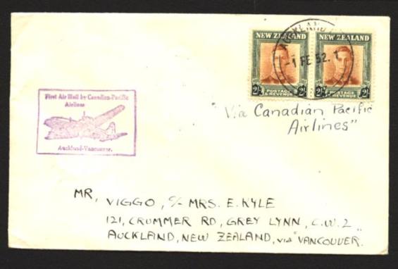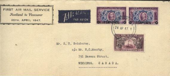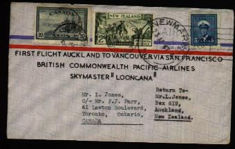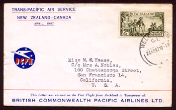 HOME > STAMP SITES > NEW ZEALAND INTERNATIONAL FLIGHT COVERS > AFTER 1940