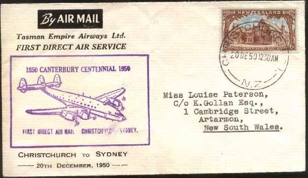 This service was by chartered Qantas DC4. Christchurch could not be serviced by flying boats and TEAL leased DC4's from Trans Australian Airways for the ongoing service.