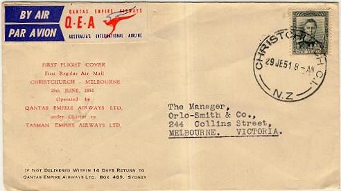 1951 Christchurch - Melbourne - First Direct Service June 28.
