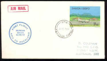 1978 Apia, Samoa to Auckland, Polynesian Airlines. This service started with a wet leased B737 from Air New Zealand, later moving to Polynesian's own 737.