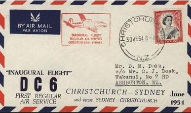 1954 Christchurch - Sydney First Direct Service DC6, May 14, ZK-BGA Aotearoa III