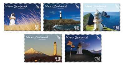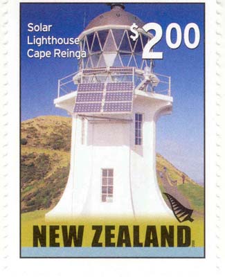 See more on these here. Universal Mail - an authorised mail operator in New Zealand - has produced lighthouse stamps. See Shades Stamp Shop for images. They have covered Cape Brett, Taiaroa Head (two variants), Cape Campbell and Cape Reinga lights. Here is one of them: New Zealand Post 2005, part of a commemorative series of stamps on stamps. iN