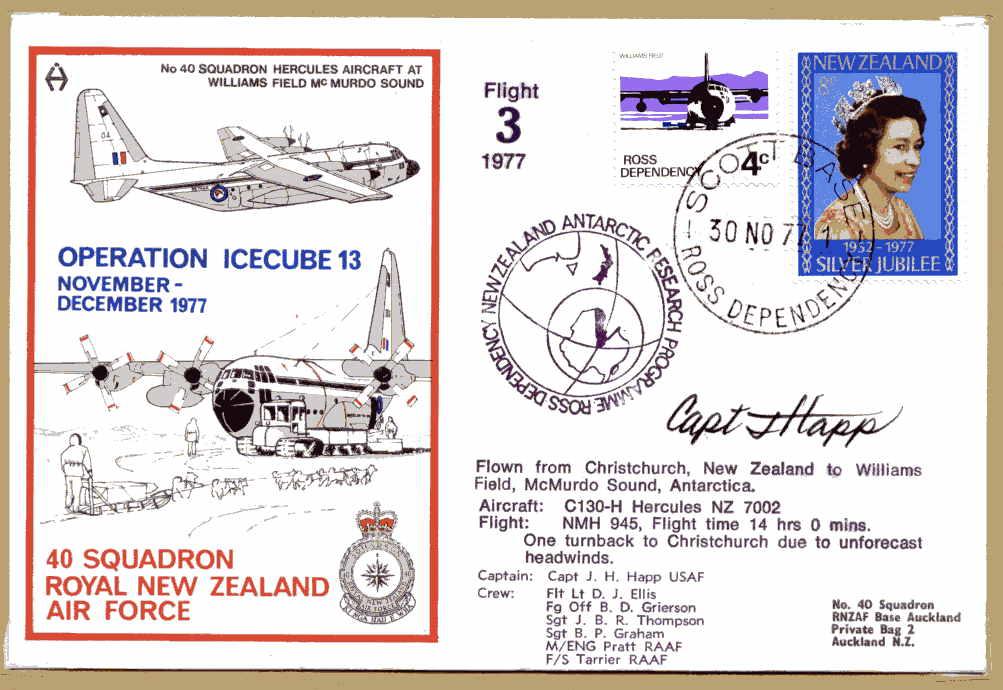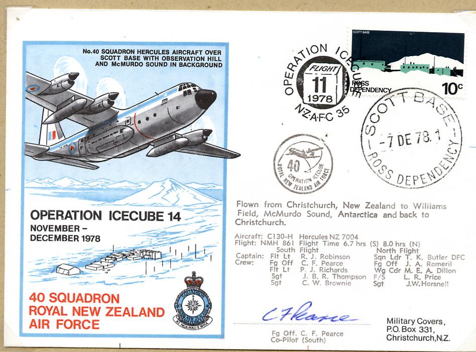 Ice cube was the name given to RNZAF supply flights. Covers were produced for many of them